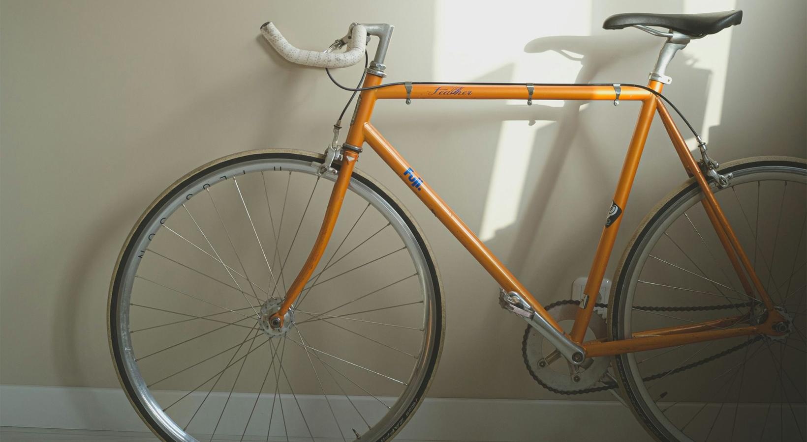 • a bicycle parked in a room