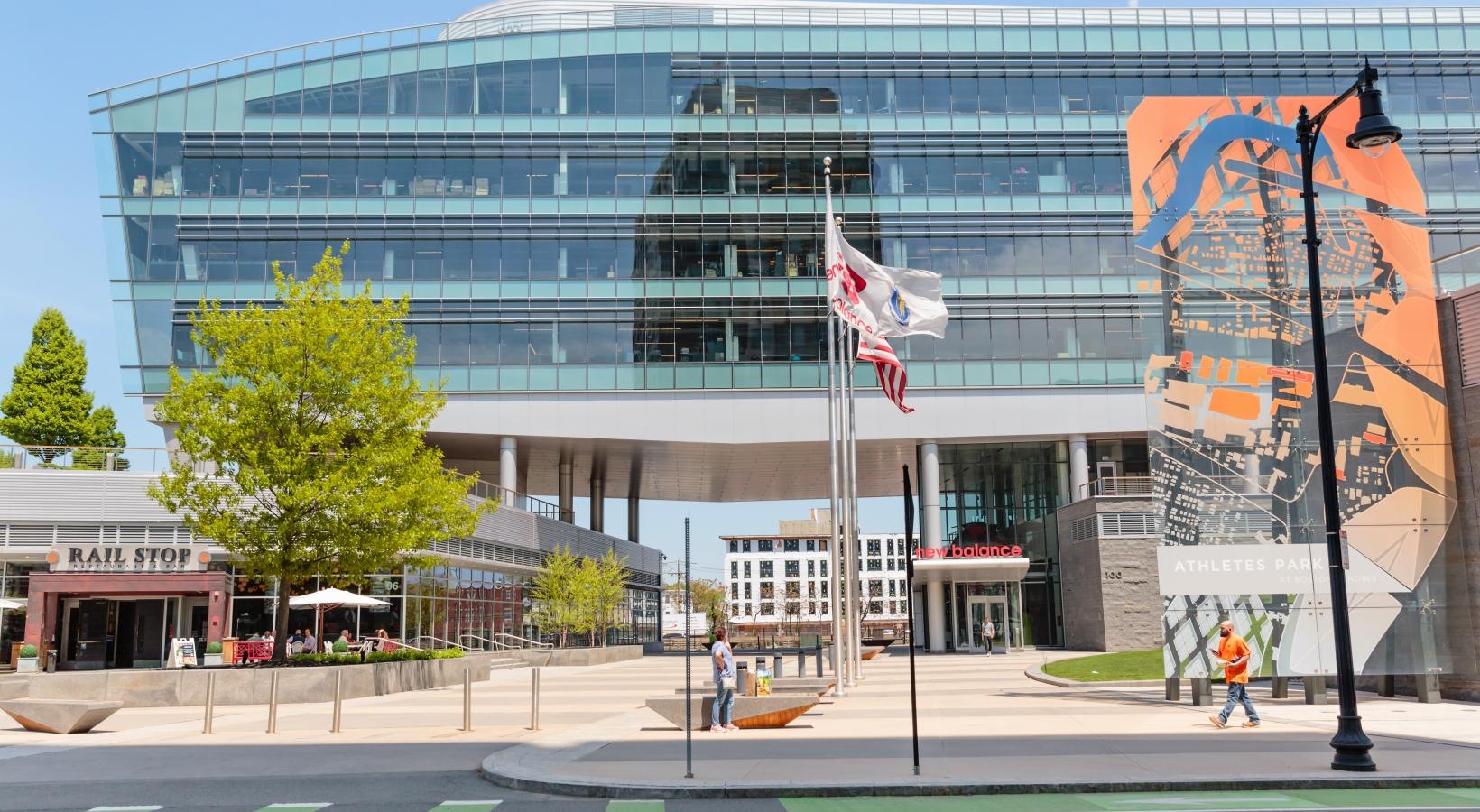 • a large building with a large glass front