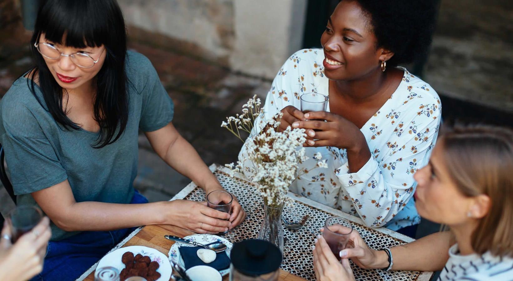 • group of women having brunch at a neighborhood restaurant