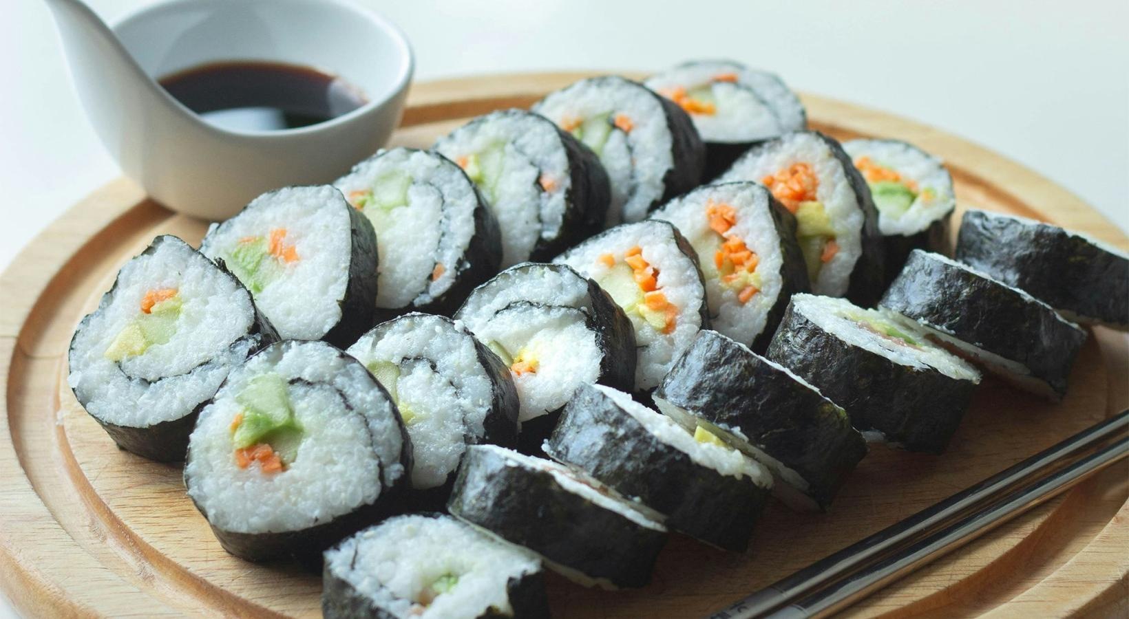 • a plate of sushi